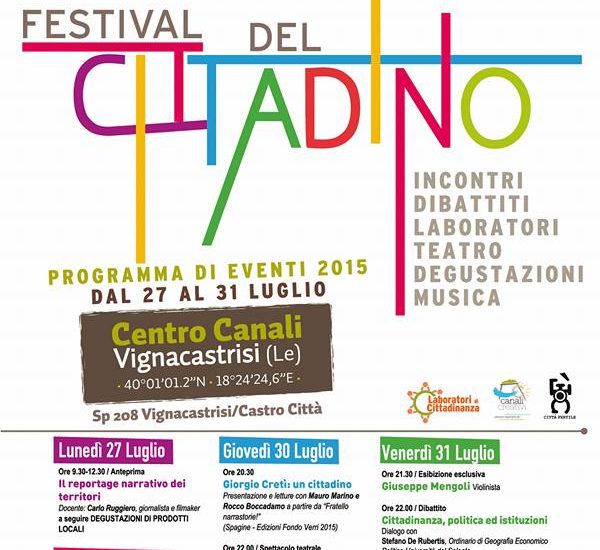 Edizione 2015 del Festival del Cittadino – Ortelle-Vignacastrisi, Centro ambientali ‘Canali’, dal 27 al 31